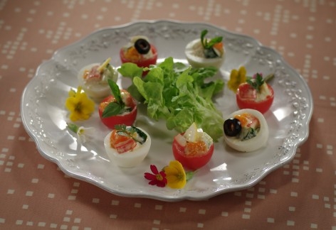 ミニトマトのカプレーゼ 可愛いお花畑サラダ 玄関外掃除ついに終了 料理 レシピ レシピ 料理